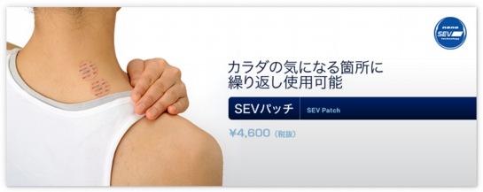 SEVパッチは、シリコン素材の中にSEV特許技術と新しいナノSEV技術を使用したSEV素材を配合し、円形状に加工したものです。